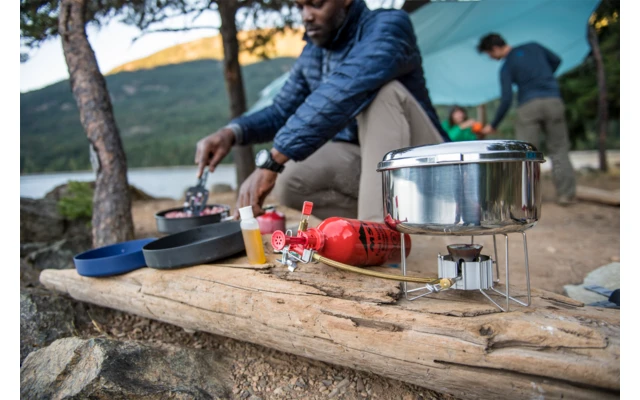 El juego de ollas Alpine está fabricado en acero inoxidable increíblemente duradero que resiste con fiabilidad incluso las condiciones más extremas. Es perfecto para el uso intensivo de viajeros frecuentes o guías e instituciones que tienen que preparar muchas comidas en diversas aventuras.