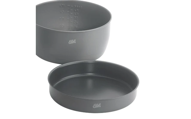 Compuesto por 2 ollas (aprox. 2L y aprox. 2,5L) y una sartén (ø aprox. 18,5 cm). El interior de la sartén tiene un revestimiento antiadherente. Las ollas tienen un indicador de volumen en Oz y litros, la sartén tiene un fondo abatible. Se incluyen soportes para ollas, pinzas para el mango y 2 tablas de cortar, así como la práctica bolsa de malla.