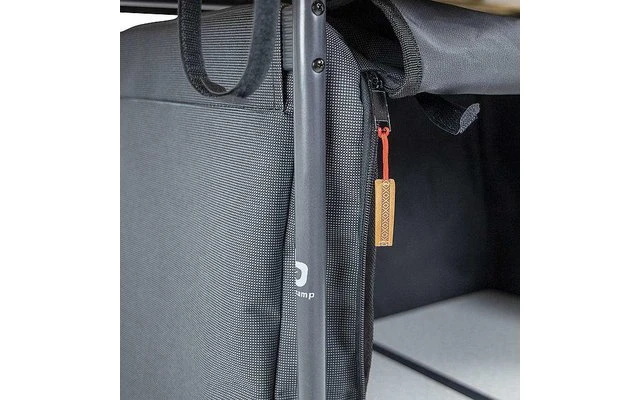Una elegante vitrina de cocina con marco de aluminio. La vitrina de cocción tiene una tapa de bambú. Además, el armario se puede plegar de forma compacta en la bolsa de transporte suministrada. Para ello, hay que juntar las patas y colocarlas debajo de la parte superior. El armario consta de 1 compartimento que contiene un inserto resistente. El tablero también es resistente al calor y al agua.