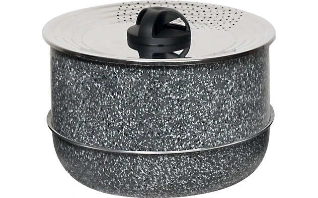 juego de cacerolas de aluminio apilables de 10 piezas con revestimiento antiadherente de alta calidad.