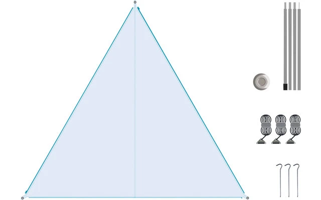 La entrega incluye 3 piquetes, 3 cuerdas de sujeción incl. topes de aluminio, postes de acero de 4 piezas de 180 cm x 19 mm incl. placas de plástico.