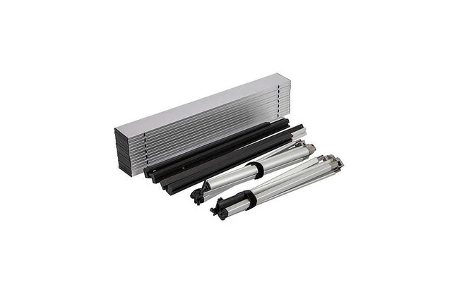 Una mesa de patas cruzadas muy estable hecha de aluminio. Esta mesa es totalmente plegable y cómoda de transportar. El tablero de la mesa se puede enrollar completamente. Las patas también se pueden plegar.