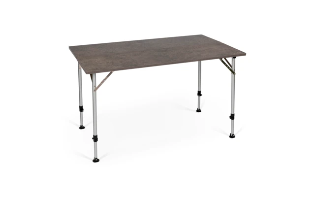 Al acampar con los muebles de Dometic, se puede cenar al aire libre. Las patas ajustables en altura y los pies que distribuyen el peso garantizan que nuestras mesas de la serie «Zero» puedan utilizarse en terrenos irregulares. Diseñada para campistas y turistas, esta mesa es extremadamente ligera y se pliega de forma compacta para facilitar su almacenamiento y transporte. La mesa Zero Concrete de Dometic tiene un tablero de aspecto de hormigón muy duradero que es completamente resistente al agua y al calor gracias a su construcción compuesta.