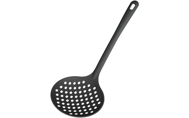 La cuchara ranurada se puede lavar en el lavavajillas y se puede colgar fácilmente en el lazo para colgar.