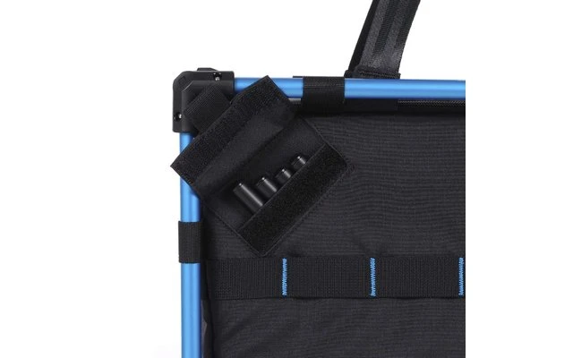 La Oficina de Campo es un sistema modular que puede ensamblarse en una sola unidad. La mesa puede fijarse a una estructura de transporte con fácil acceso a una bolsa de transporte de 15 litros. Sin embargo, también puede separarse y utilizarse por separado.